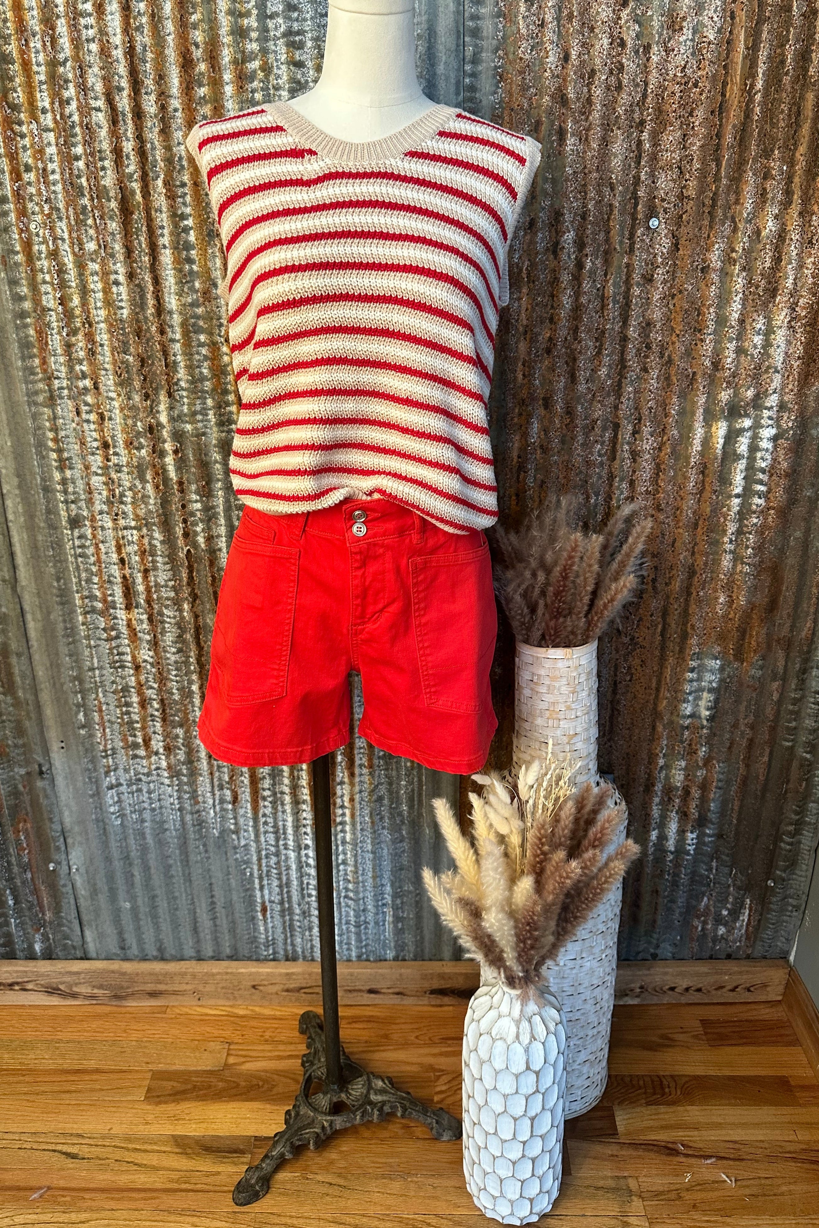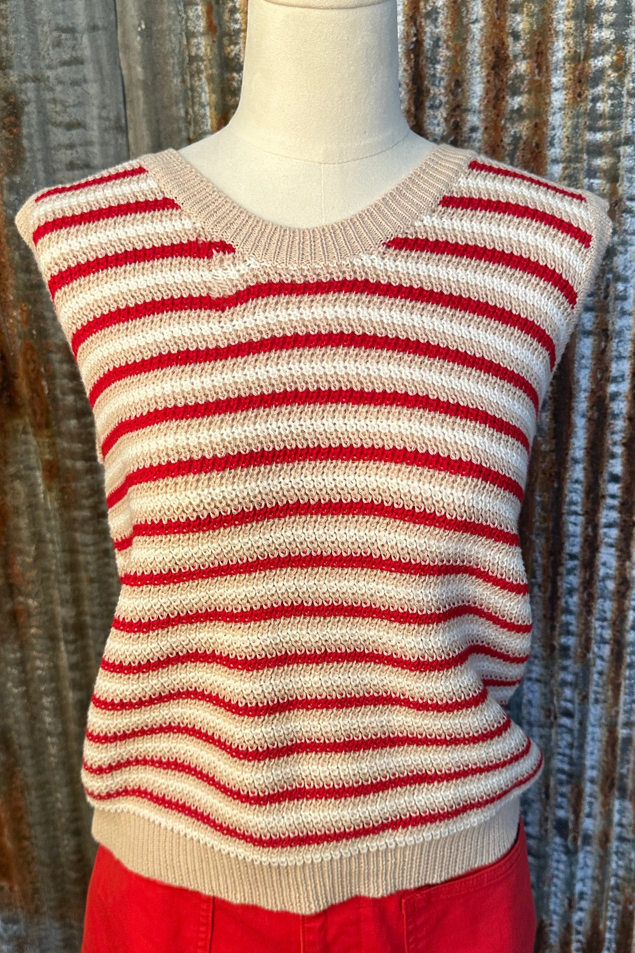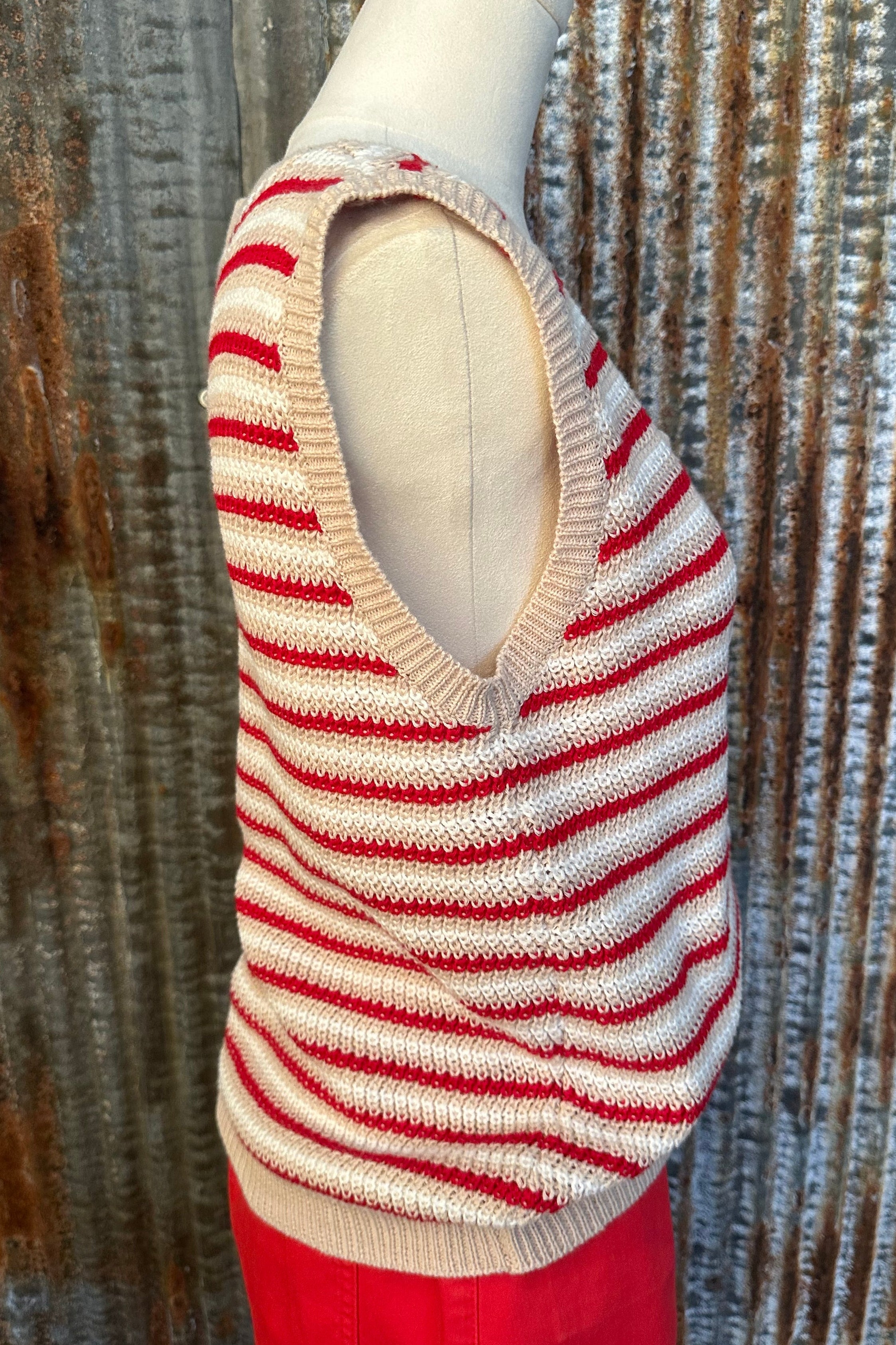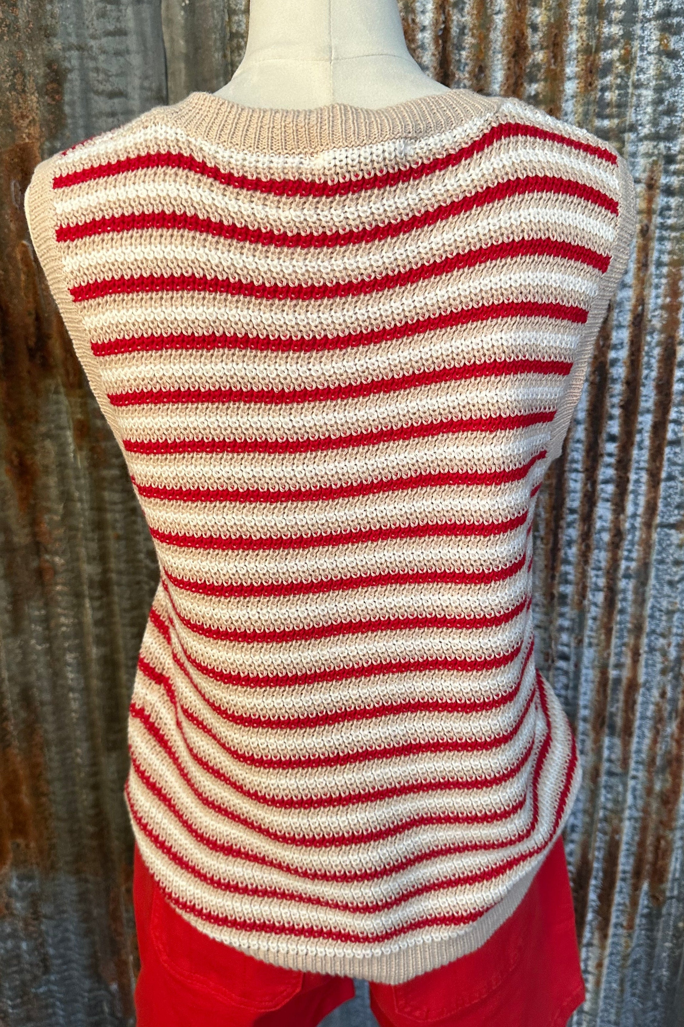 The Cherry Cream Striped Knit Tank is the perfect blend of cozy and chic. Designed with a soft, lightweight knit and bold red stripes, this sleeveless sweater top adds a playful pop to any outfit. Featuring a relaxed fit and classic crew neckline, it’s easy to tuck or wear loose for an effortlessly styled look. Pair it with denim, shorts, or skirts for an easy, everyday statement.